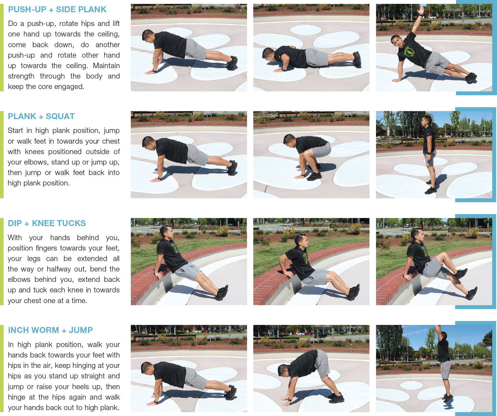For this HIIT WORKOUT do each EXERCISE 30-45 SECONDS with a RECOVERY OF 15-20 SECONDS in between. For more of a challenge, during your recovery period you can jog in place. Do as many rounds as you can.